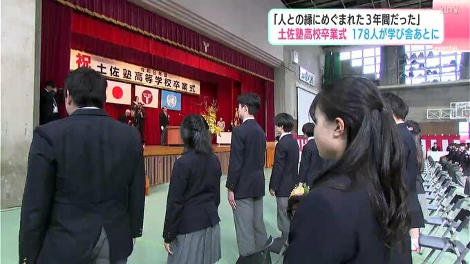 「人との縁にめぐまれた3年間だった」土佐塾高校卒業式 178人が学び舎あとに 2025年1月29日(水) 18:16 国内 暮らし・マネー 早くも卒業シーズンです。高知県高知市の土佐塾高校で卒業式が行われ、178人の卒業生たちが思い出が詰まった学校から新しい世界に向けて旅立っていきました。高知市にある土佐塾高校では卒業式が行われ卒業生178人…