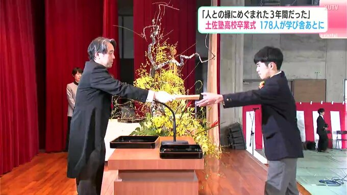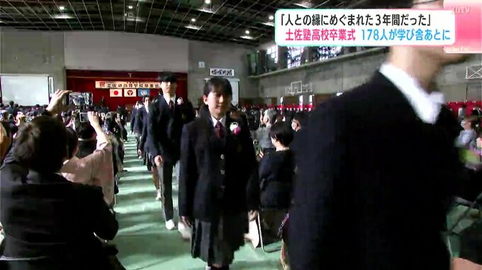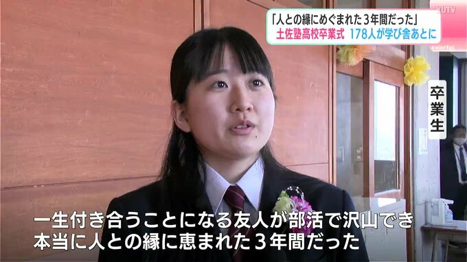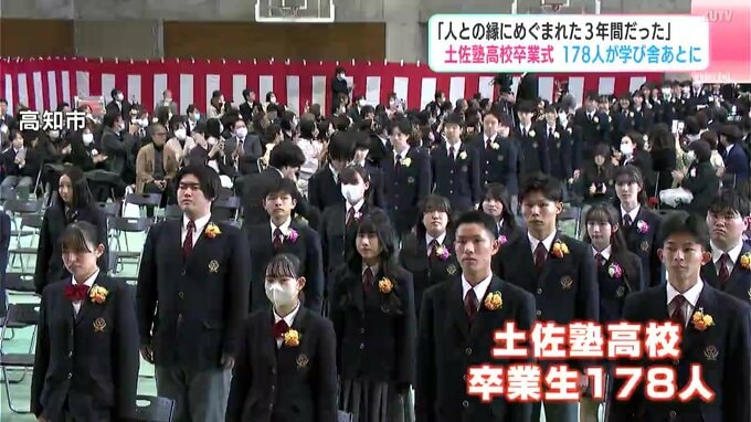 早くも卒業シーズンです。高知県高知市の土佐塾高校で卒業式が行われ、178人の卒業生たちが思い出が詰まった学校から新しい世界に向けて旅立っていきました。