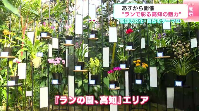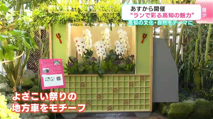高知県内で栽培されたラン科植物を集めた展示が県立牧野植物園で8日から開かれます。よさこい祭りやおきゃくなど高知の文化や自然をテーマとし、展示に趣向を凝らしています。