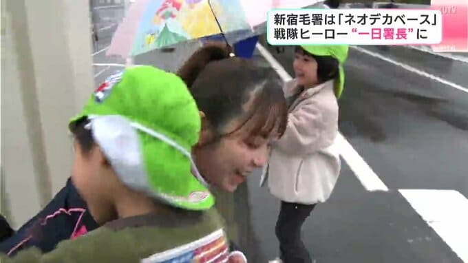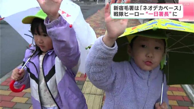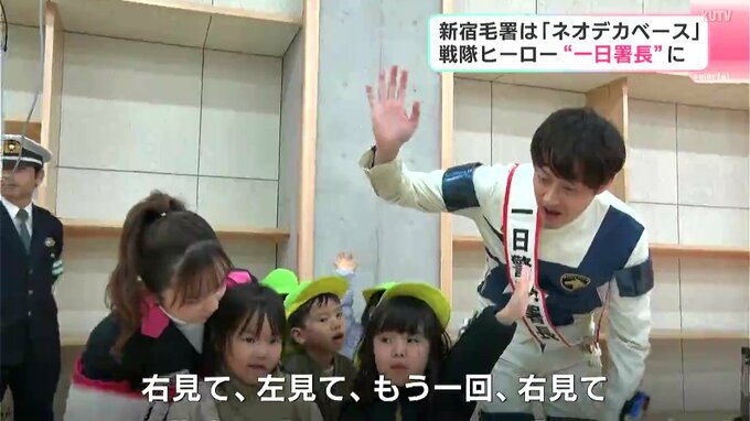 一日署長に任命されたのは宇宙警察がモチーフの『特捜戦隊デカレンジャー』で隊員を演じた吉田友一さんと妻の菊地美香さんです。作品では、警察署を“ネオデカベース”と呼んでいて、宿毛警察署の新庁舎への移転に伴い、子どもたちを交通事故や犯罪から守るのがミッションです。2人は『きぼうが丘保育園』の園児36人と『小筑紫小学校』の児童10人に信号機の役割や横断歩道の渡り方を教えました。