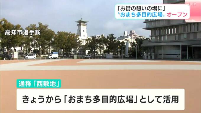高知市の通称「西敷地」が、18日に“多目的広場”としてオープンしました。“おまち”の新たな憩いの場となることが期待されます。
