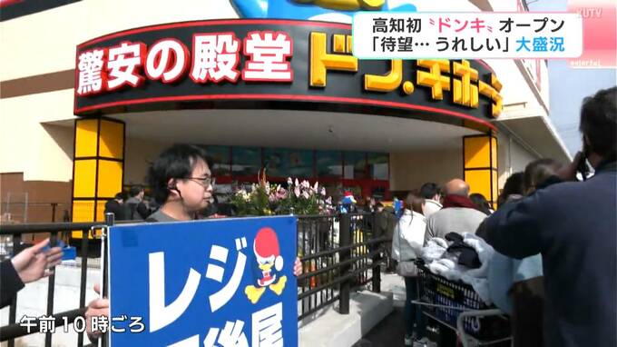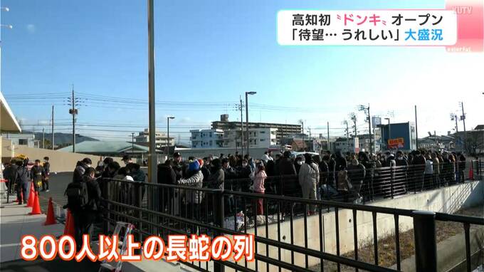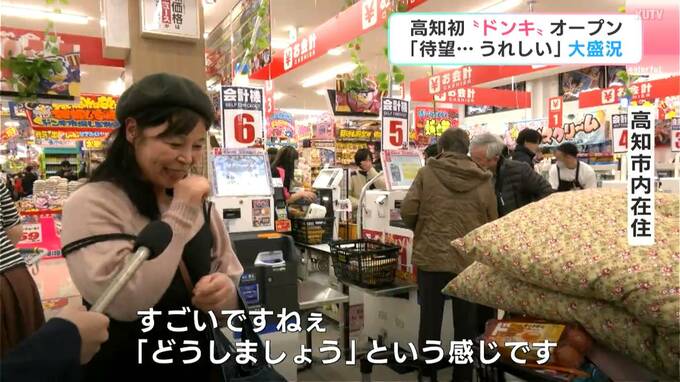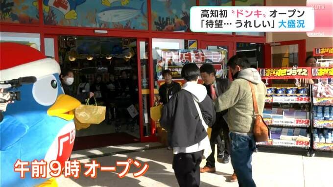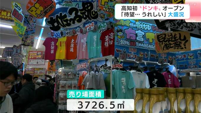 高知初進出となるドン・キホーテ高知店が、18日朝、高知市にオープンしました。初日は、一時、入場制限が行われるほどの大賑わい。開店を待ちわびていた人たちは商品の種類に圧倒されながらも、初の「地元ドンキ」での買い物を楽しんでいました。