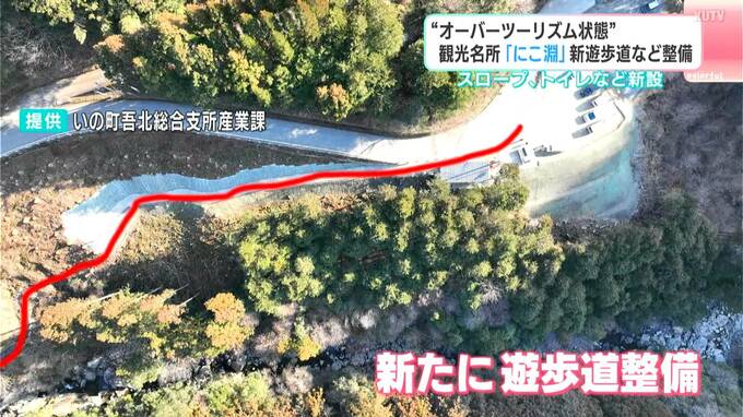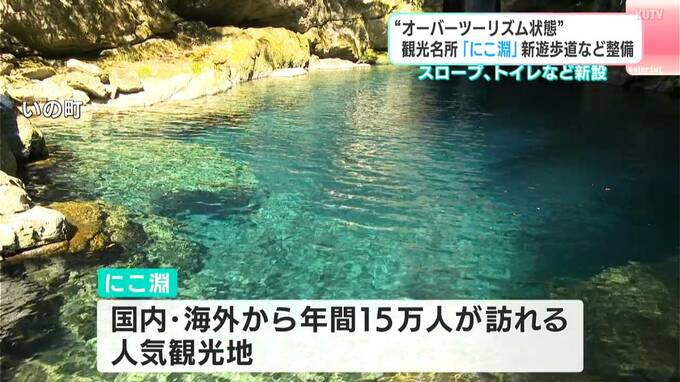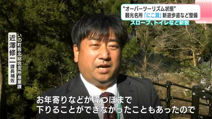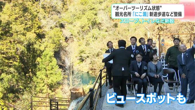 高知県いの町の人気観光地「にこ淵」周辺の遊歩道や公衆トイレが新しく整備され26日公開されました。以前よりも“快適”ににこ淵を楽しむことができます。