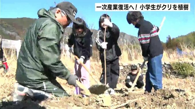 一次産業の復活を目指し25日、高知県四万十町で小学生らがクリの苗木を植えました。実を収穫できるのはおよそ5年後です。
