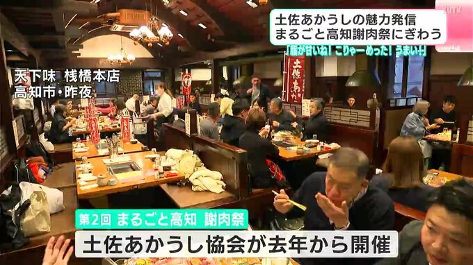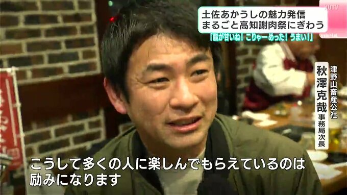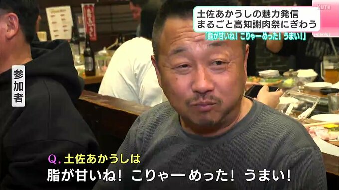 このイベントは土佐あかうし協会が2024年から開いています。26日夜は、高知県内の畜産農家や消費者、230人以上が参加。土佐あかうしを中心に、四万十ポークやはちきん地鶏など県内の様々な食材を味わっていました。