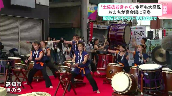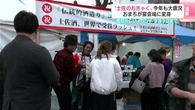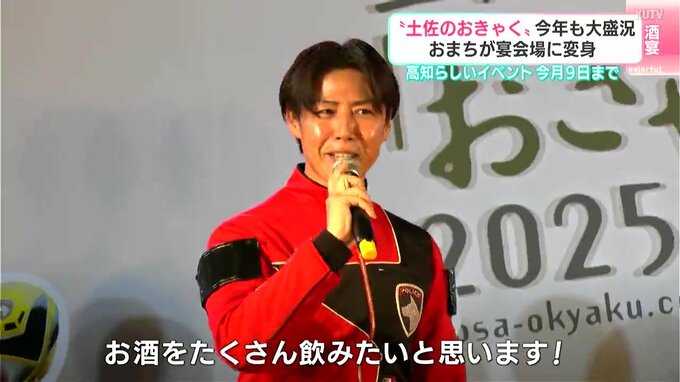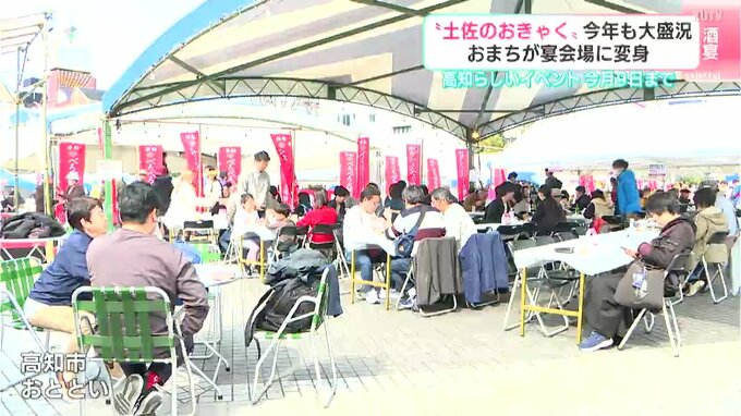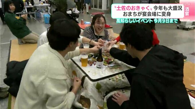 1日から始まった高知の春の風物詩「土佐のおきゃく」。おまちが宴会場に変わり、2025年も大勢の人でにぎわっています。