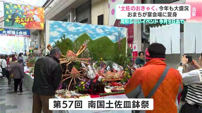 土佐のおきゃくでは開催期間中、毎日イベントが目白押し。2日は大橋通り商店街で、「南国土佐皿鉢祭」が開かれました。「皿鉢料理」の継承と調理技術の向上を目指して毎年開かれていて、57回目となった2025年は、およそ30団体の料理人が手がけた和洋中200皿ほどが、商店街を華やかに彩りました。