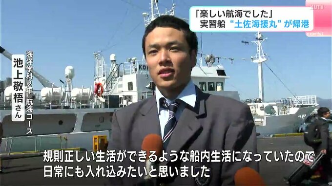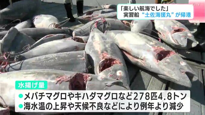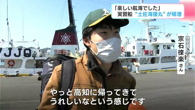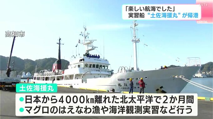 1月11日に高知を出航した「土佐海援丸」。およそ2か月間、日本からおよそ4000キロ離れた北太平洋でマグロのはえなわ漁や海洋観測実習などを行い、10日、13人の生徒を乗せて帰港しました。