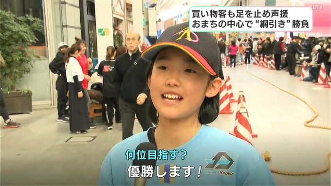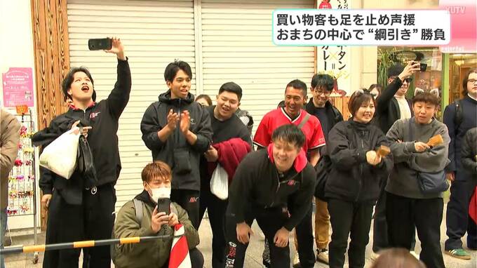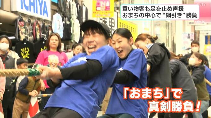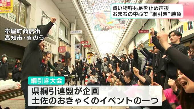 9日に高知市の帯屋町商店街で綱引き大会が開かれました。優勝をかけ、「おまち」の中心で真剣勝負!買い物客が思わず足を止める熱戦が繰り広げられました。