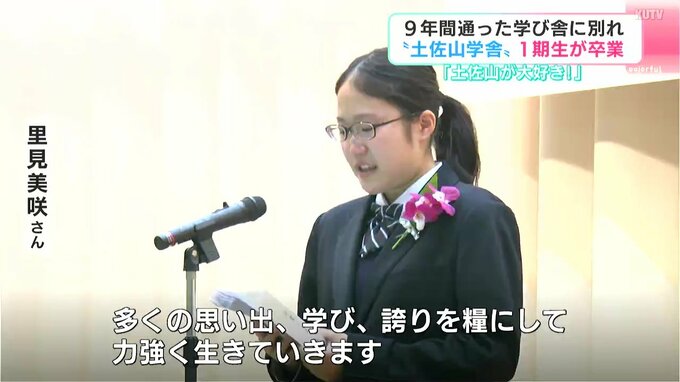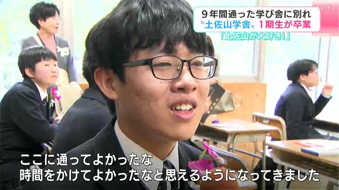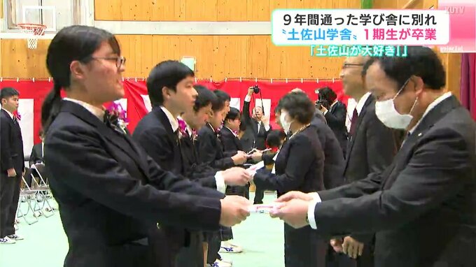 義務教育学校“土佐山学舎”に、9年前に入学した1期生が卒業の日を迎えました。9年間で“地元愛”を育んだ生徒たちは、思い入れのある学び舎を後にしました。