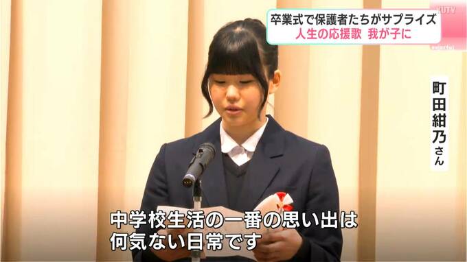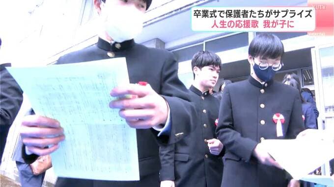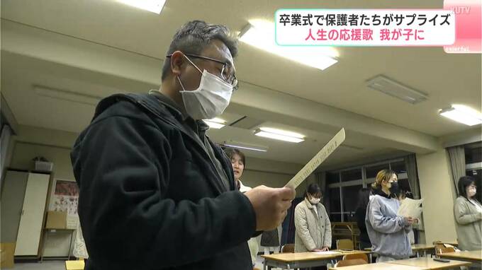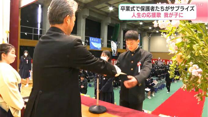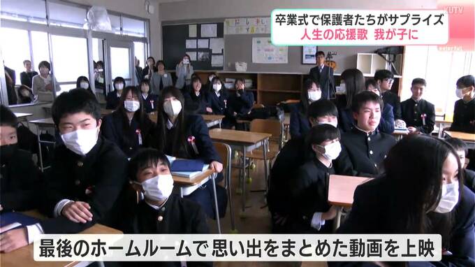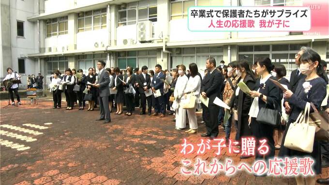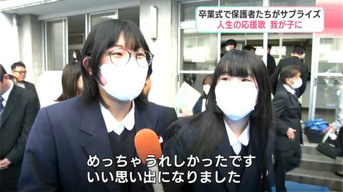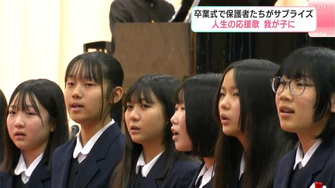 高知市の中学校でも、卒業式が行われました。このうち横浜中学校では保護者たちがサプライズで歌を贈り、子どもたちの門出を祝いました。