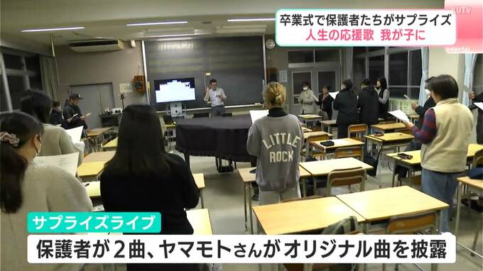 卒業式の日に披露する歌は3曲。保護者らが2曲を歌い、最後に、ヤマモトさんがオリジナル曲を歌います。