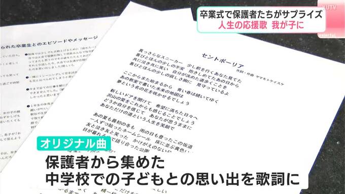 そしてこの日、初めて、オリジナル曲が披露されました。この曲は、保護者たちから集めた、中学校での子どもとの思い出が歌詞にまとめられています。