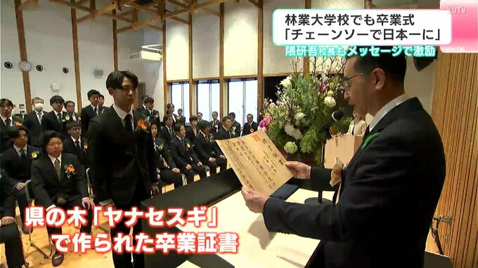「チェーンソーで日本一に」林業大学校でも卒業式 隈研吾校長もメッセージで激励 2025年3月14日(金) 18:37 国内 暮らし・マネー 林業の担い手も巣立ちの日です。高知県香美市の林業学校でも卒業式が行われました。林業大学校を卒業したのは、森林管理や木造設計など林業について学んだ42人です。卒業生の平均年齢は24.6歳。一度社会人を経験…