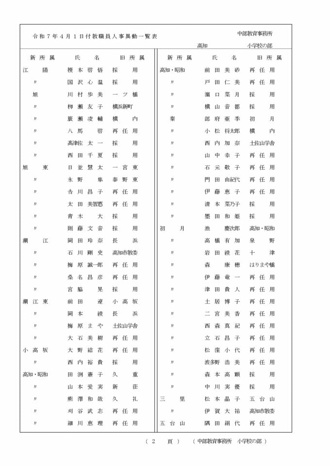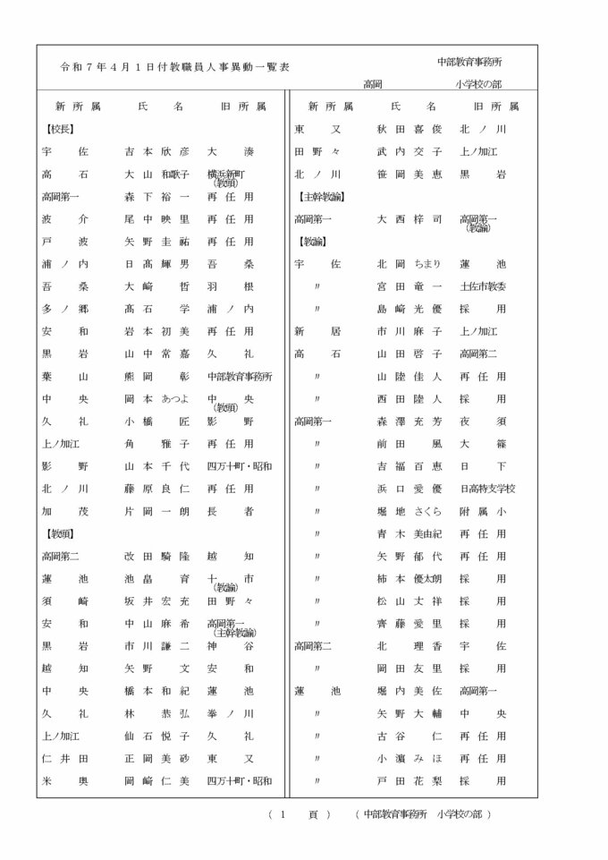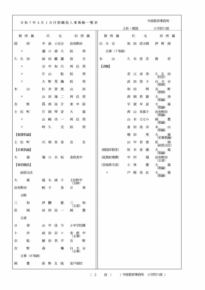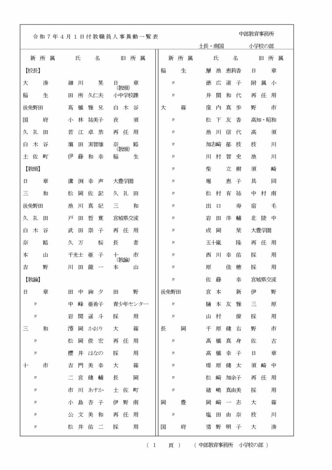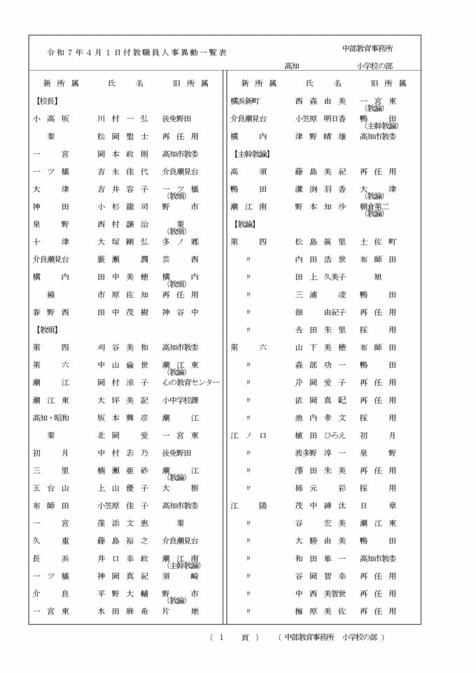 高知県 教職員人事異動情報2025(1)「あの先生、どこに行くが?」(小学校・中学校・義務教育学校)