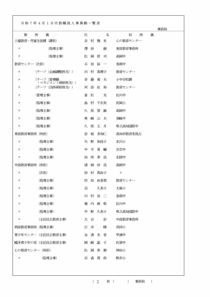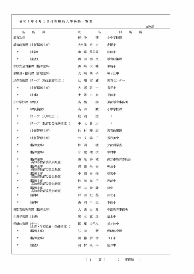 高知県 教職員人事異動情報2025(1)「あの先生、どこに行くが?」(小学校・中学校・義務教育学校)