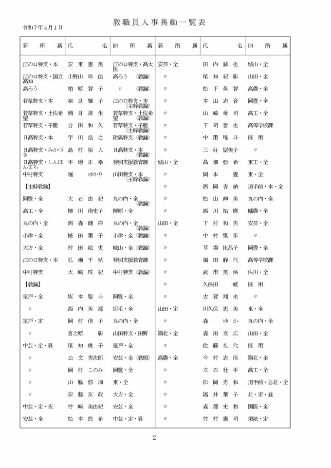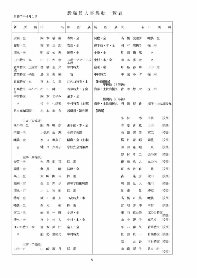 高知県 教職員人事異動情報2025(2)「あの先生、どこに行くが?」(県立中学校・県立高校・特別支援学校など)
