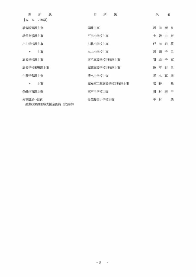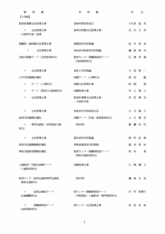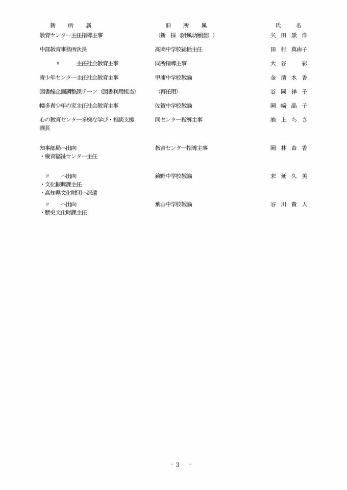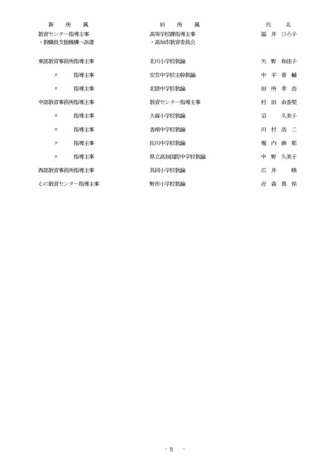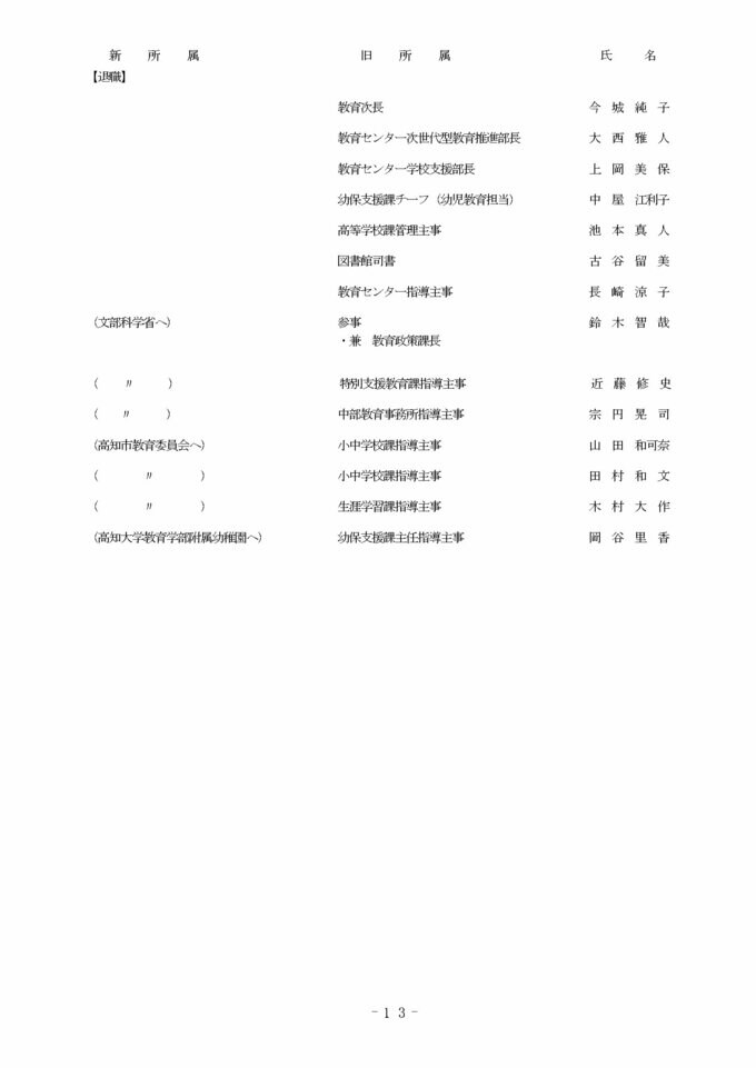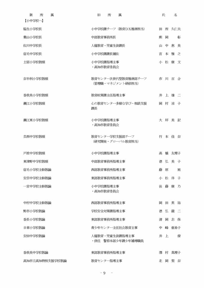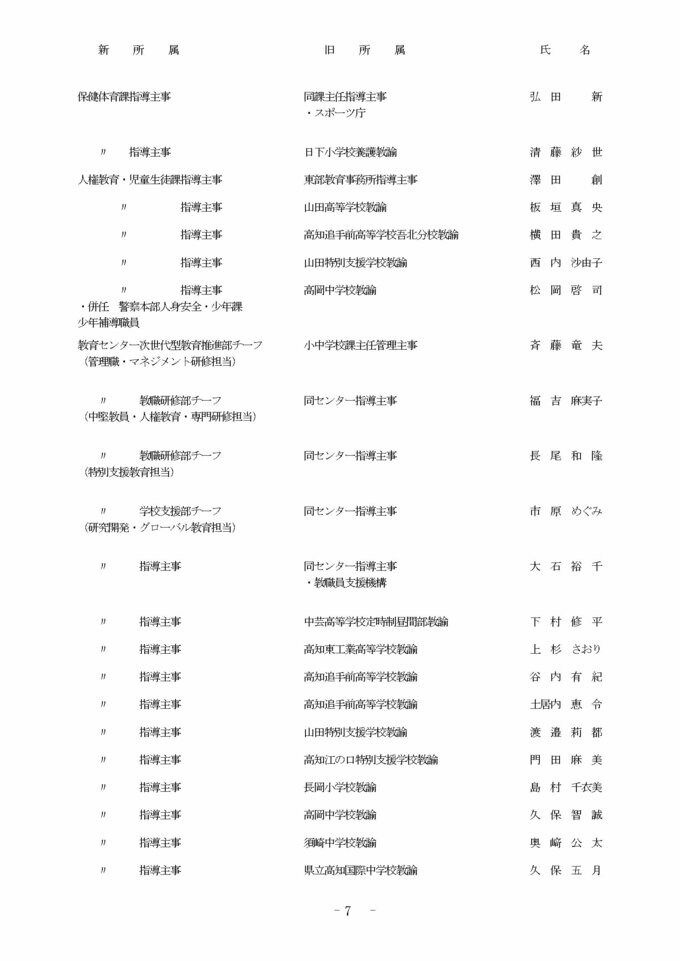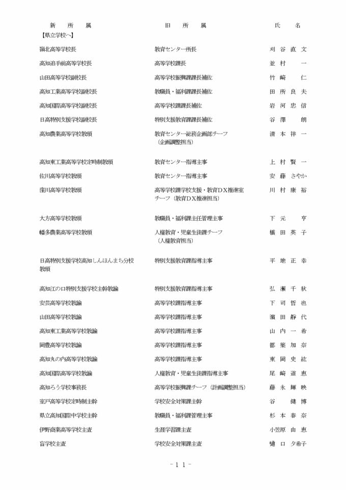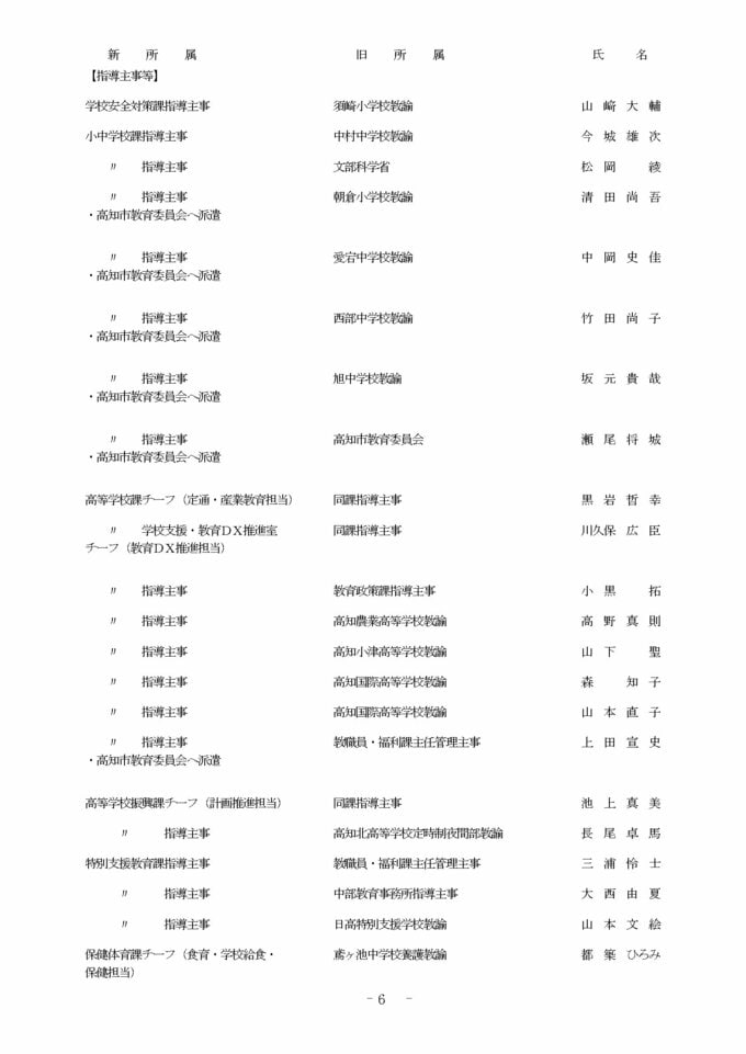 高知県 教職員人事異動情報2025(3)「あの先生、どこに行くが?」(教育委員会事務局など)