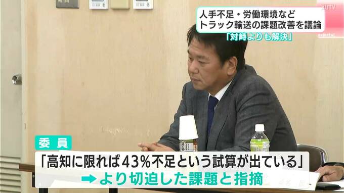 トラック輸送についてはこのまま何も対策をしなければ、2030年度には全国で必要とされる輸送力の34%が不足すると言われています。会議では5年後の輸送力不足について、委員が「高知に限れば43%という試算が出ている」としてより切迫した課題だと指摘。