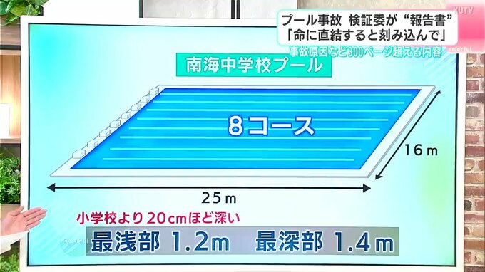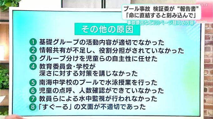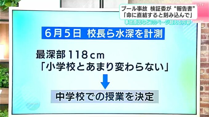 さらに、学校、教育委員会に関しても、「深さへの対策を講じていなかった」としています。授業の開始前には保護者に「小学校の深さとあまり変わらない」と連絡していましたが、実際は深くなっていたこと、最初の授業で3人が溺れかけたことなど、「水深の深さという危険性が現実化していたにも関わらず、漫然とこの状態が放置された」と指摘しています。