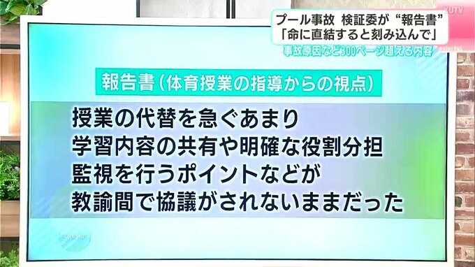 この点について報告書は「体育授業の指導」からの視点で『授業の代替を急ぐあまり、学習内容の共有や明確な役割分担、監視を行うポイントなどが教諭間で協議がされないままだった』と指摘しています。