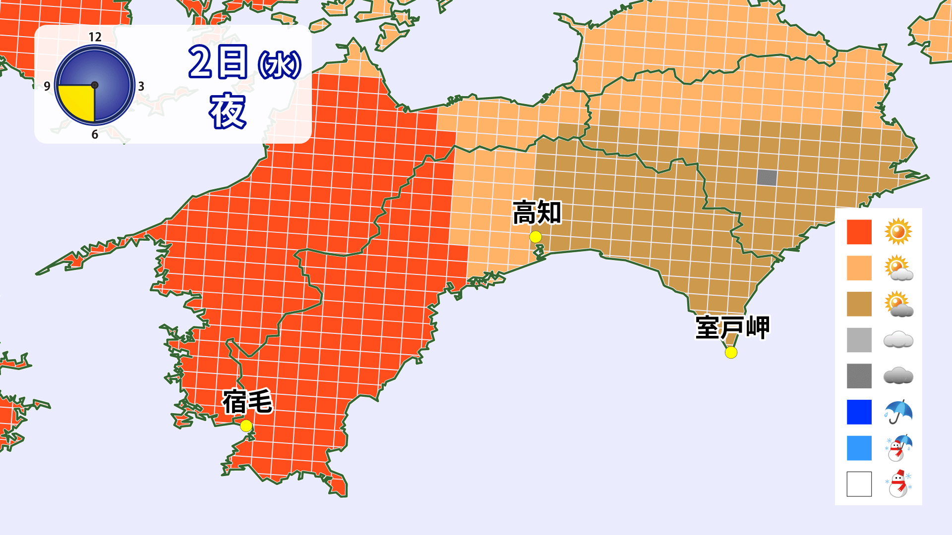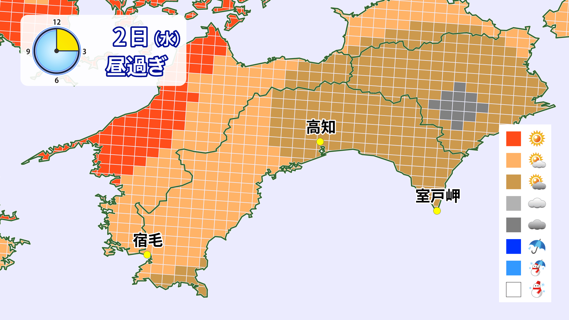 2日は平野部・山沿いともに午前中を中心に雨が降る所が多くありそうです。