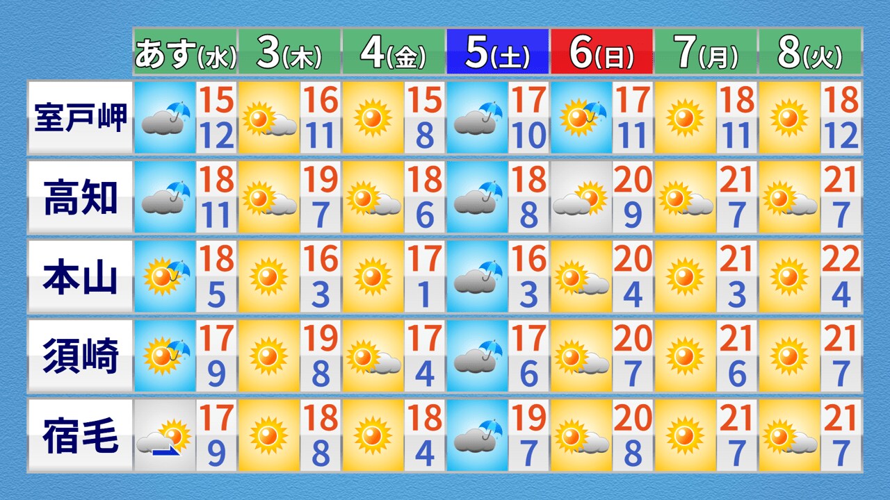 2日の午前中は通勤通学の多い時間を中心に中部・西部を中心に雨が降るでしょう。降水量は多いところで1時間に3ミリ前後となりそうです。午後になると日差しが届く範囲が多くなる見込みです。洗濯は、午後から外干しが出来そうです。