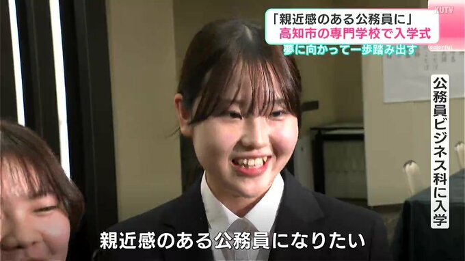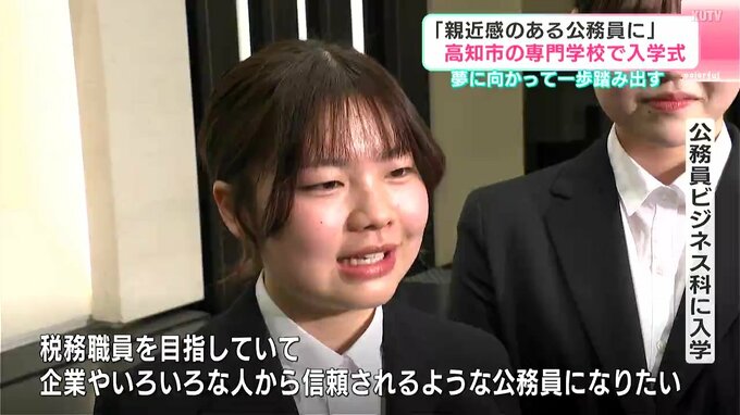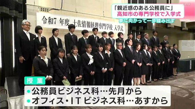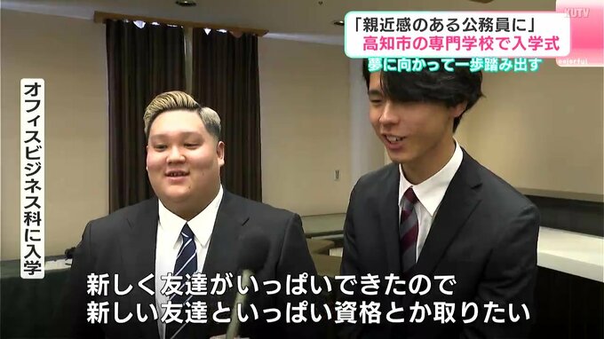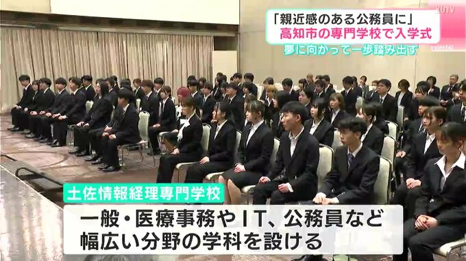 土佐情報経理専門学校は一般事務や医療事務、IT、公務員など幅広い分野で学科を設けていて、新入生たちはこれから夢に向かって勉学に励みます。