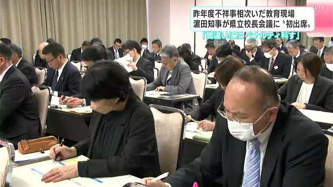 「間違ったことをした時にはしっかりペナルティを科す」不祥事が相次いだ教育現場 高知・濵田知事が県立校長会議に“初出席” 2025年4月11日(金) 18:36 国内 暮らし・マネー 2024年度、教職員による不祥事が相次いだ高知県内の教育現場。11日に開かれた県立学校長会議に出席した濵田知事は「間違いにはペナルティを科す。これを厳格にやることは全ての基本」と述べ不祥事防止の取り組みを…