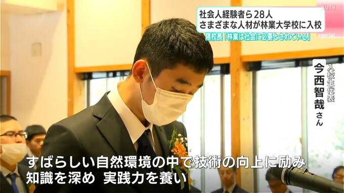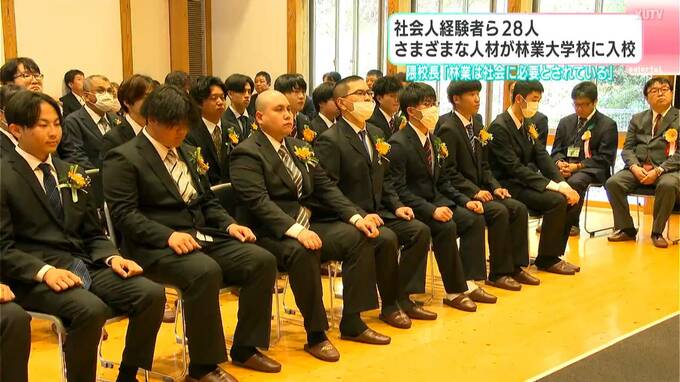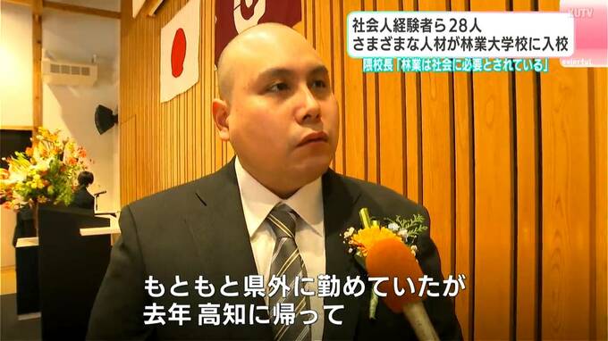 高知県香美市の林業大学校で入校式が行われました。さまざまな人材が林業の担い手を目指します。