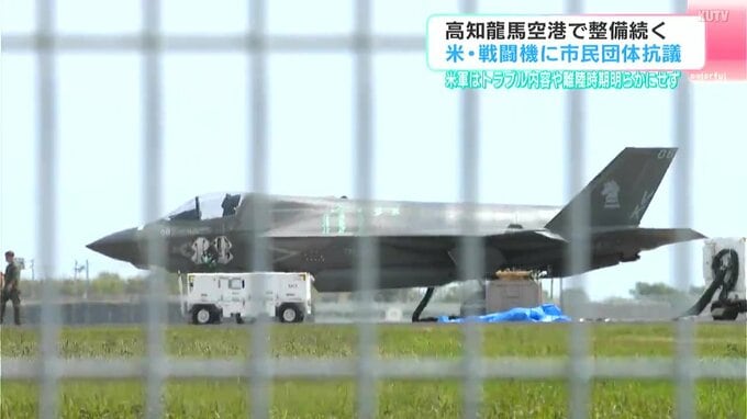 高知龍馬空港で整備続くアメリカ軍戦闘機に市民団体抗議 米軍はトラブル内容や離陸時期明らかにせず 2025年4月11日(金) 18:40 国内 暮らし・マネー 3月、高知龍馬空港にアメリカ軍の戦闘機が着陸し、2週間以上経った11日もとどまり続けていることを受け、高知県内の市民団体が、抗議活動を行いました。高知龍馬空港では3月25日に、アメリカ軍の戦闘機が着陸し、…