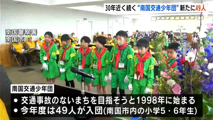 「事故を1件でも減らせるように」30年近く続く“南国交通少年団”新たに49人の小学生が入団(高知) 2025年4月12日(土) 17:42 国内 高知県南国市の小学生たちが交通安全に取り組む「南国交通少年団」の入団式が行われました。30年近く続く取り組みです。この取り組みは交通事故のないまちを目指そうと、1998年に始まりました。今年度は南国市内11…