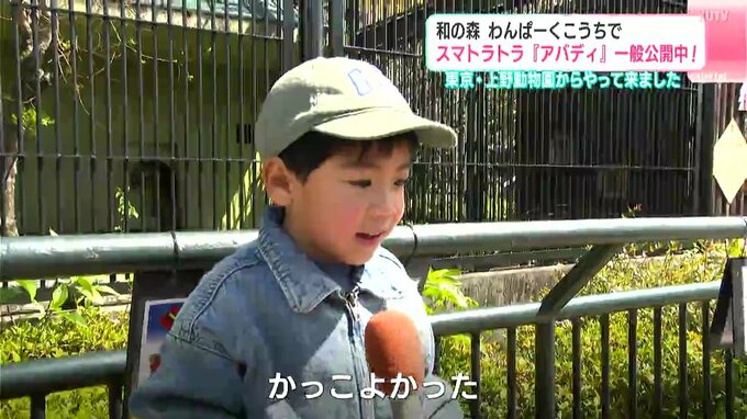 スマトラトラはインドネシアのスマトラ島に生息する肉食獣でトラのなかでは最も小柄。それでも「アバディ」の体長はおよそ2.4メートル、体重はおよそ90キロで元気がよく食欲旺盛だといいます。3月29日に、東京の上野動物園からやって来て新しい環境に慣れたことから14日から公開が始まりました。時折ソワソワした様子もありましたが、水を飲んだり前足で顔をかいたりとゆったりとくつろいだ姿も見せていました。訪れた子どもも新しいトラに興味津々です。
