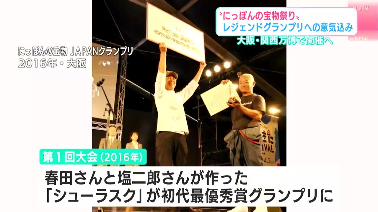 2人は来週、大阪・関西万博で行われる「にっぽんの宝物祭り」で、過去のグランプリ受賞者だけが出られる「レジェンドグランプリ」に出場することになっています。「にっぽんの宝物」は、地域に眠る食や工芸などを磨き上げ、全国や世界レベルに育てようというプロジェクト。2016年の第一回大会では、春田さんと塩二郎さんが作った「シューラスク」が初代の最優秀賞グランプリに輝きました。