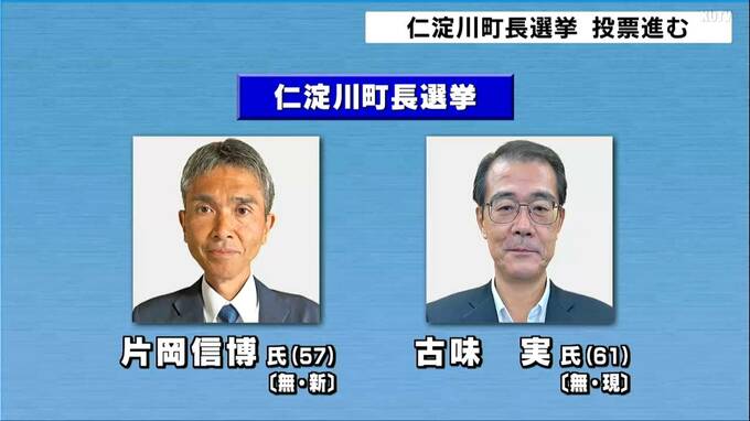 高知県仁淀川町の町長選挙投票進む 有権者の34.95%にあたる1376人が9日までに期日前投票【高知】 2025年8月10日(日) 12:54 国内 任期満了に伴う、高知県仁淀川町の町長選挙の投票が10日朝から行われています。仁淀川町長選挙は届け出順にいずれも無所属で、元町役場職員の新人=片岡信博(かたおか・のぶひろ)(57)氏と2期目を目指す現職=…