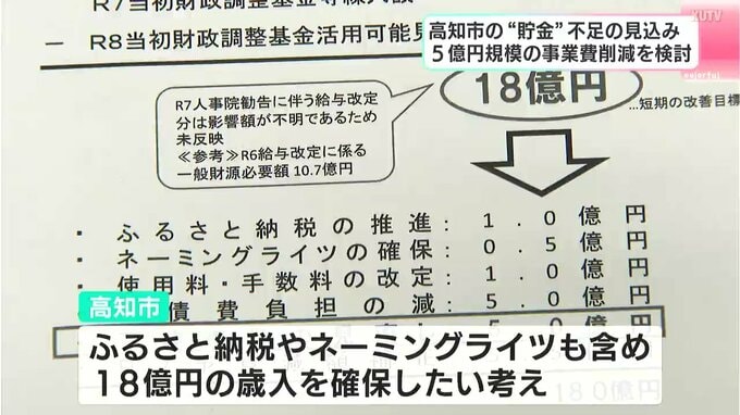 市の貯金にあたる「財政調整基金」の不足が見込まれていることから高知市が総額5億円規模の事業費の削減を検討していることが分かりました。