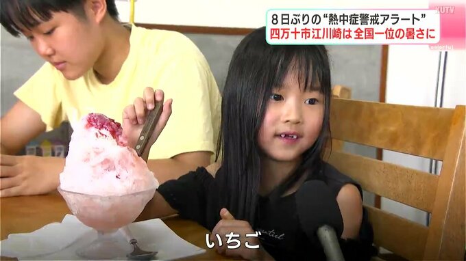 県内の最高気温は四万十市江川崎で37.6℃、本山町で36.3℃、高知市で33.5℃などとなりました。県内には8日ぶりに熱中症警戒アラートが発表。高知市の氷店にはかき氷で涼む人の姿がありました。
