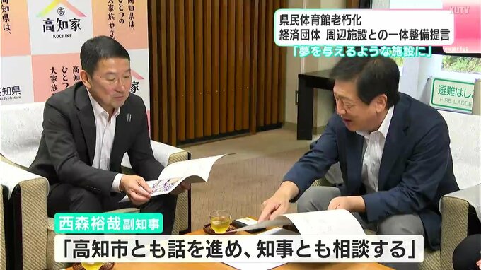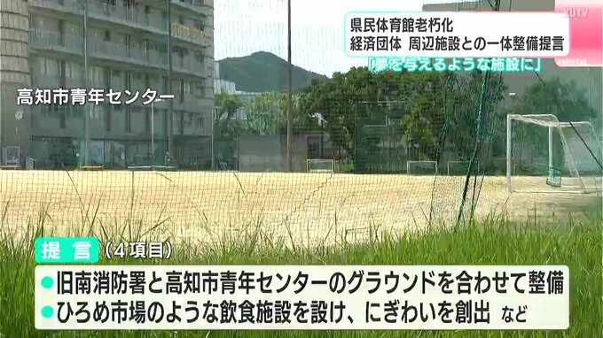 老朽化している県立県民体育館について高知県内の経済団体が周辺施設も含めた一体整備を県に提言しました。