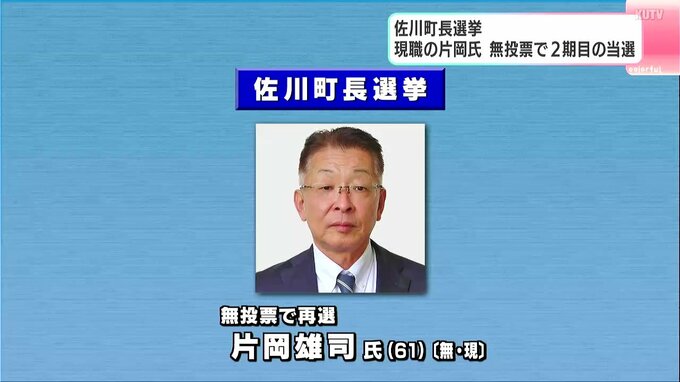 高知県佐川町長選挙 現職・片岡氏が無投票で2期目の当選 2025年9月30日(火) 18:31 国内 暮らし・マネー 30日に告示された高知県佐川町長選挙は、現職の片岡氏以外に立候補者はなく、無投票で再選されました。佐川町長選挙は無所属の現職で2期目を目指す=片岡雄司(かたおか・ゆうじ)氏(61)以外に立候補者はなく、…