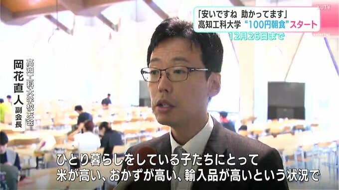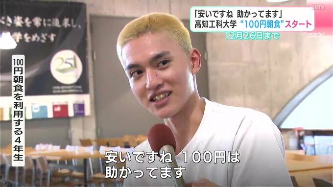 値上げが続く中、高知工科大学では学生に100円で朝食を提供する取り組みが2025年も10月1日から始まりました。