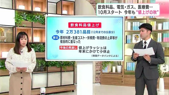 きょうから10月です。2024年に続き、2025年も“値上げ”の10月スタートとなりました。主にどんなものが値上げとなったのか、こちらをご覧ください。