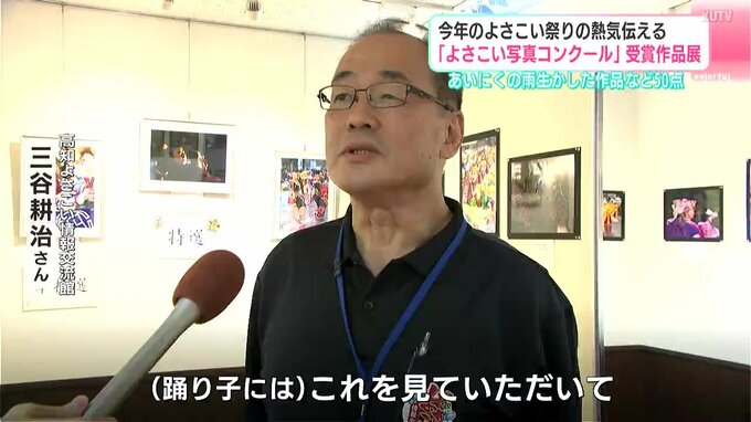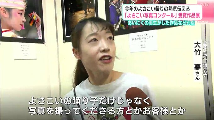 2025年のよさこい祭りで撮影された写真を審査する、「第11回よさこい写真コンクール」には、21都府県から381作品が寄せられ、このうち50作品が受賞しました。今年の応募作品は、あいにくの雨を活かした写真が多かったということです。作品展には初日から訪れた踊り子の姿もありました。