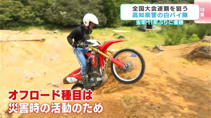 県警は長年、香美市の牧場の土地を借りて練習に臨んでいます。トライアルと呼ばれるこちらの種目ではオフロードバイクに乗って崖や段差を登ったり下ったりします。