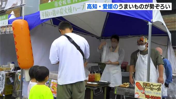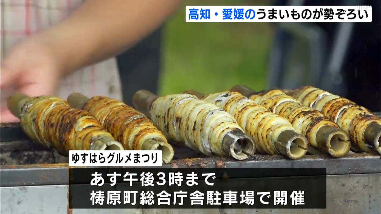 高知県梼原町で、高知と愛媛のグルメが楽しめるイベントが開かれ、大勢の人で賑わっています。