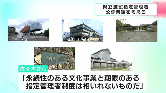 「高知の県立施設がどうあるべきかという目指す方向があったうえで、手段(指定管理者制度か公募か)を選ぶことに本来なると思う。手段の話がすごく先行していってしまっているので議論のたてつけが逆になっている印象」
