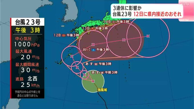 日本のはるか南にある台風23号は12日日曜に高知県内に接近する恐れがあります。
