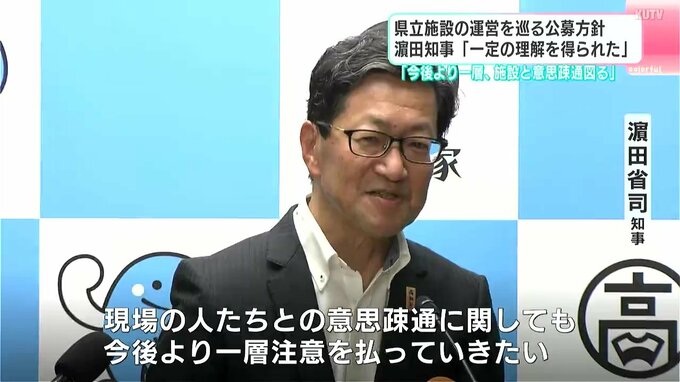 波紋を広げている県立施設の運営を巡る公募方針について、高知県の濵田知事は「委員会の採決では賛成多数で一定の理解は得られた」とした上で、今後、施設側と意思疎通を図っていく考えを示しました。