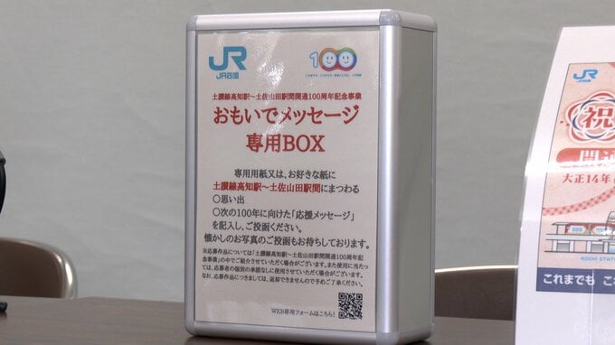 また、「おもいでメッセージ」も募集します。JR四国がこれまで行ってきた100周年記念事業の中で初めて企画され、10月15日から1か月間、土讃線の高知ー土佐山田間に関する思い出を募集し、改めて思いを馳せるきっかけを作ります。