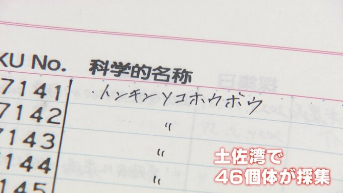 トンキンソコホウボウはフィリピンや中国、台湾など南シナ海と太平洋の一部で20個体ほどしか採集されていませんでしたが、今回土佐湾でこれまでの記録を大きく上回る46個体が採集されました。