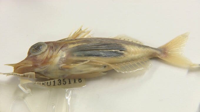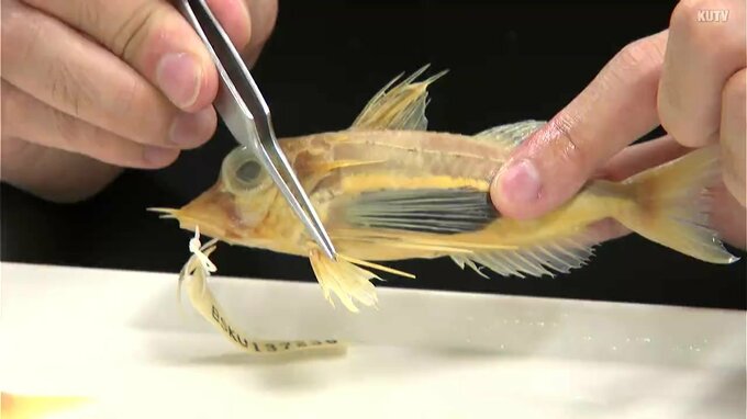 ユニークな顔をしたこちらの魚はホウボウの仲間の「トンキンソコホウボウ」です。12日に高知大学の研究チームが土佐湾で採れた個体を「日本初記録」として論文で発表しました。論文の筆頭著者は高知大学理工学部の3年生、饗場空璃(あいば・そらり)さん。普段は魚類の分類や分布について学んでいます。
